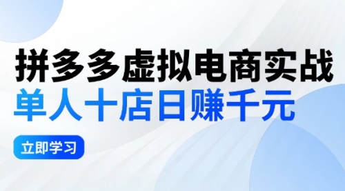 拼夕夕虚拟电商实战:单人10店日赚千元,深耕老项目