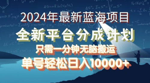 2024年最新蓝海项目,全新分成平台,可单号可矩阵,单号轻松月入10000+