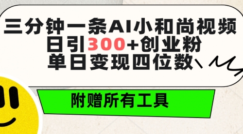 三分钟一条AI小和尚视频,日引300+创业粉。单日变现四位数,附赠全套工具