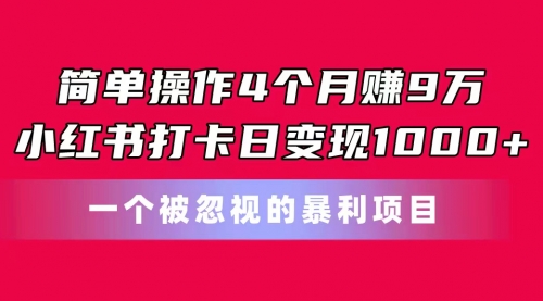 简单操作4个月赚9万!小红书打卡日变现1000+