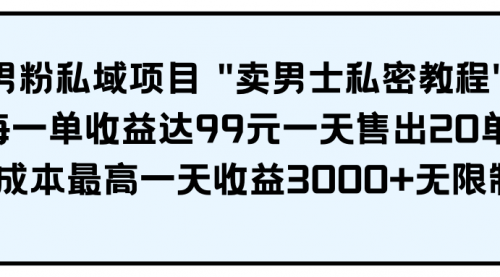 男粉私域项目"卖男士私密教程"每一单收益达99元一天售出20单