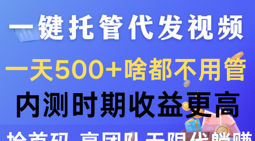 一键托管代发视频,一天500+啥都不用管,内测时期收益更高,抢首码