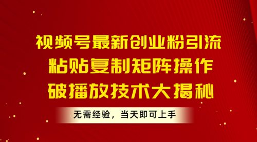 视频号最新创业粉引流,粘贴复制矩阵操作,破播放技术大揭秘