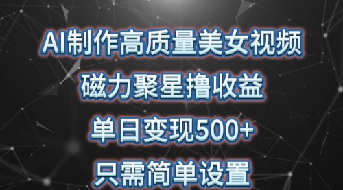 AI制作高质量美女视频,磁力聚星撸收益,单日变现500+