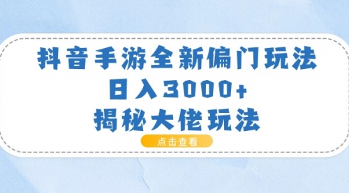 抖音手游全新偏门玩法,日入3000+,揭秘大佬玩法